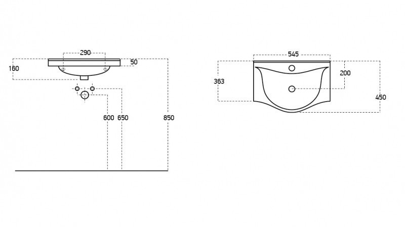 Bútorba építhető és falra is csavarokkal felszerelhető mosdó, amely kiváló minőségű kerámiából készül, így magas ellenálló képesség és tartósság jellemzi. A mosdó középen elhelyezkedő csapfurattal és túlfolyóval rendelkezik.
