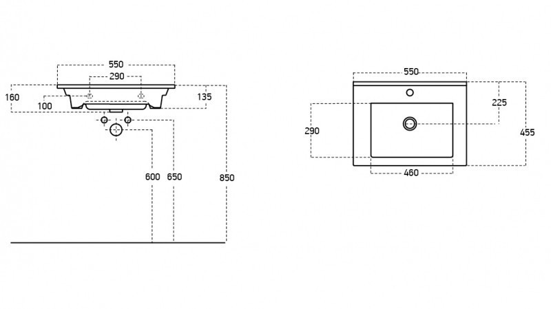 Bútorba építhető és falra is csavarokkal felszerelhető szögletes mosdó, amely kiváló minőségű kerámiából készül, így magas ellenálló képesség és tartósság jellemzi. A mosdó középen elhelyezkedő csapfurattal és túlfolyóval rendelkezik.