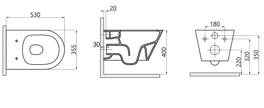 Sanovit AVVA fali WC - rimless - perem nélküli - rejtett szerelésű - 53 cm