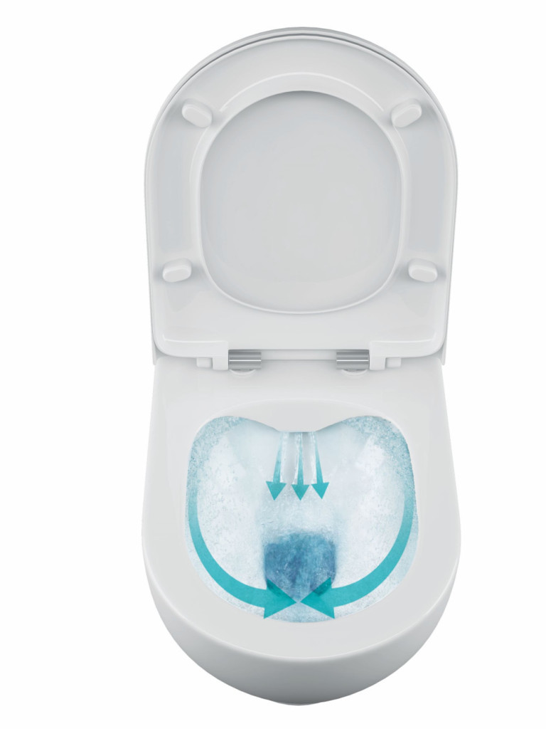 Öblítővíz csak hátul folyik ki, különleges formájának köszönhetően tökéletesen kiöblíti a belső teret. A WC-csésze tisztántartása egyszerű.