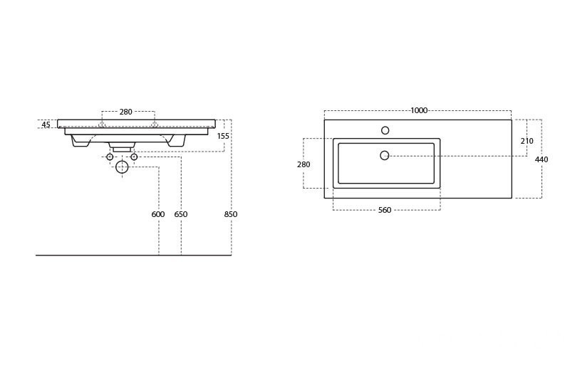 Pultba és bútorba építhető és falra is csavarokkal felszerelhető szögletes mosdó, amely kiváló minőségű kerámiából készül, így magas ellenálló képesség és tartósság jellemzi. A mosdó középen elhelyezkedő csapfurattal és túlfolyóval rendelkezik.