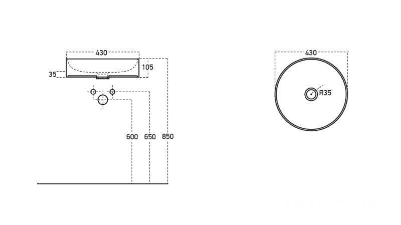 Sanovit LUCENTE - PULTRA ültethető - Top Counter - porcelán mosdó - O - Ø 43 cm
