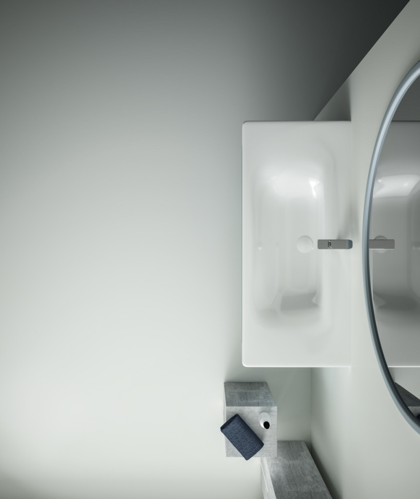 Kiváló minőségű kerámiából készül, így magas ellenálló képesség és tartósság jellemzi. A mosdó középen elhelyezkedő csapfurattal és túlfolyóval rendelkezik. A mosdó intelligens kerámia bevonattal van ellátva, aminek hatására a szennyeződés nehezebben tapad meg a felületen, valamint nem sárgul és öregszik el. A mosdókagyló hátsó része máz nélküli, ezért a beépítést falhoz közel ajánljuk.