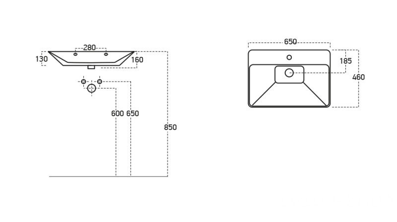 Sanovit TEODORA - PULTRA ültethető - Top Counter - porcelán mosdó -  - 65 x 46 cm