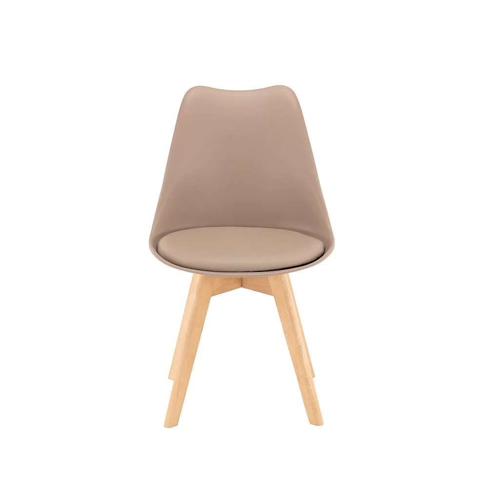Az ülőfelület strapabíró polipropilénből készült, amely egyszerre tartós és könnyen tisztítható – ideális választás mindennapos használatra. A szintetikus bőrhatású PVC párnázat extra kényelmet nyújt, miközben egyszerűen letörölhető, így családok számára is praktikus megoldás. A bükk színű, erős fa lábak biztosítják a stabilitást és a hosszú élettartamot.