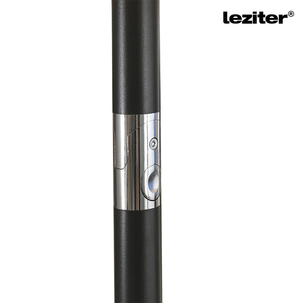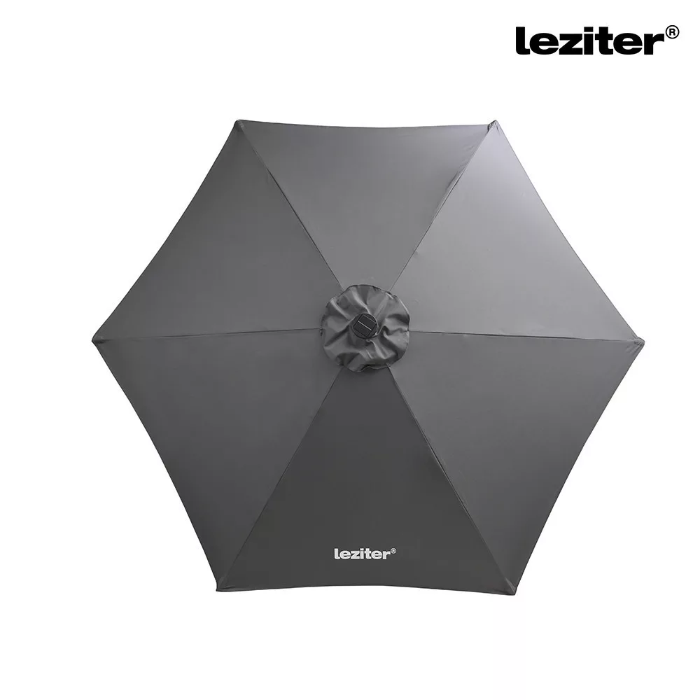 A Leziter Solari kerti napernyő 300 cm átmérőjű kialakítással rendelkezik, amely egyenletes lefedést biztosít a középoszlop körül. A kör alakú forma jól használható kertekben, teraszokon vagy kerti bútorok fölött. A ponyva kialakítása a mindennapi kültéri használathoz igazodik, felülete vízlepergető, így a nedvesség nem szívódik fel azonnal. A szürke szín világos, visszafogott megjelenést ad, amely könnyen illeszkedik különböző kültéri környezetekhez.