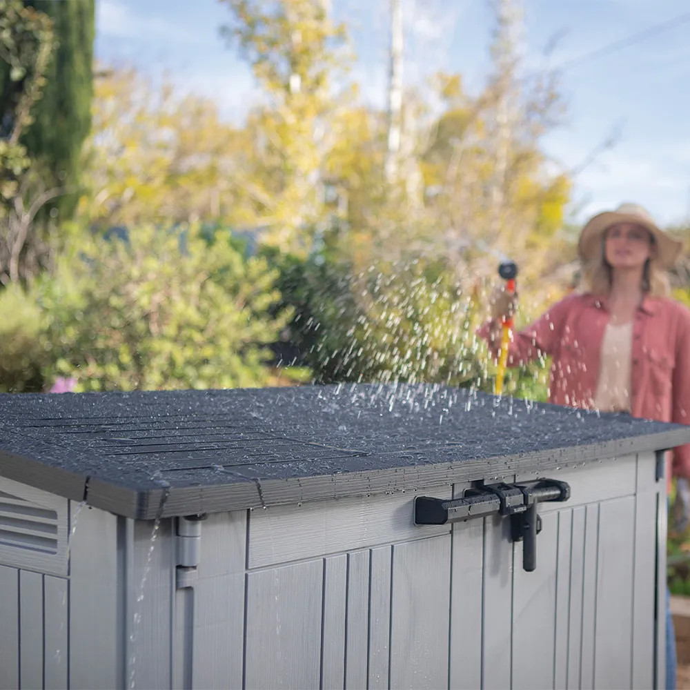 Az előnyei közé tartozik az is, hogy a műanyag kerti tároló rendkívül könnyen tisztítható. Csak egy nedves ruhával vagy szivaccsal kell letörölni őt, és már tiszta is, így akár pár perc alatt újra makulátlanná varázsolhatod. Időjárásálló anyagból készült tároló hosszú élettartammal rendelkezik, így évekig használható.
