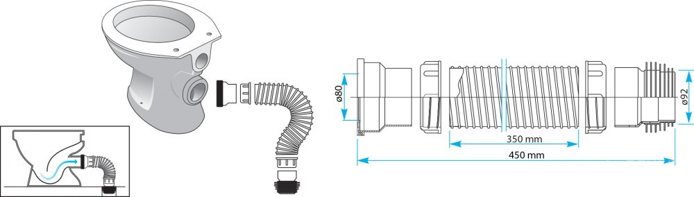 TEXO flexibilis WC bekötőcső Ø 110 x 0,35 m