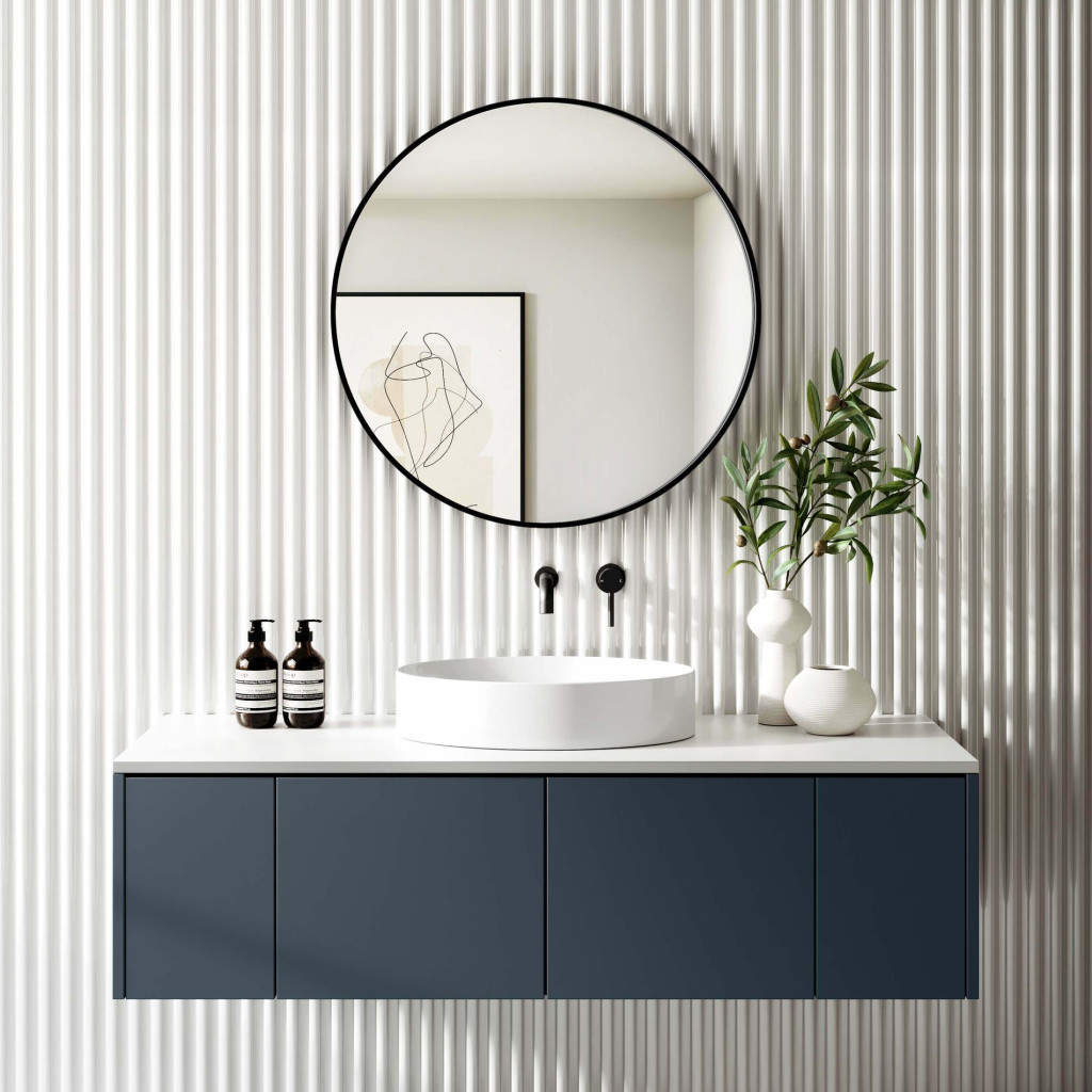 TMP IRON fürdőszobai tükör - FEKETE keret - kerek - 90 cm
