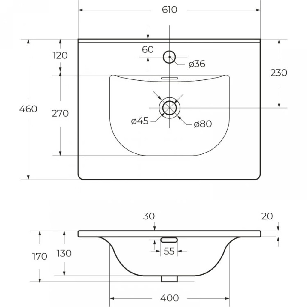 TMP MODENA 60 fali függesztett fürdőszobabútor - SKY E-8099-60 porcelán mosdóval - 61 x 46 cm