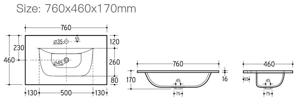 TMP SLIM STRIPE 75 fali függesztett fürdőszobabútor - SKY E-8099-75 porcelán mosdóval - 75 x 46 cm