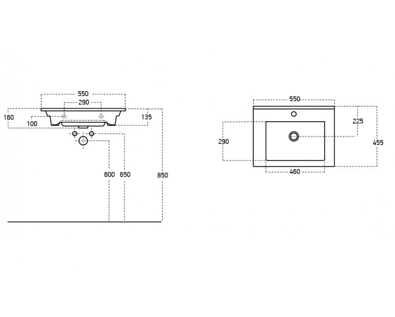 TMP VIVA 55 fali fürdőszobabútor - Sanovit ATRIA 9055 porcelán mosdóval - 55x45,5 cm