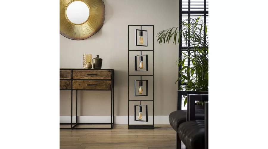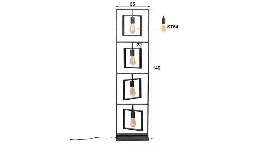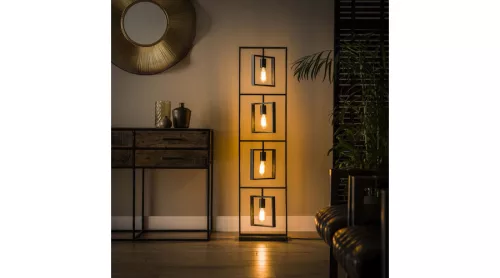 A TURN SQUARE állólámpa fémből készült, antracit színű kivitelben. A külső négyzetek alulról felfelé vannak összekapcsolva, míg a belső négyzetek teljesen forgathatók, így tetszés szerint helyezhetők el. A nyitott kialakítású lámpatest jól érvényesíti a fényforrásokat, és szépen világítja be a teret. Ez az állólámpa egy sorozat része, amely két függesztett lámpát, egy állólámpát és egy asztali lámpát tartalmaz. A legjobb fényhatás érdekében LED izzó használata ajánlott.