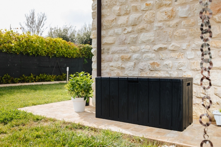 A kerti műanyag tárolódoboz, a BRAVO 270 literes grafit színben - Több, mint tárolóhely!