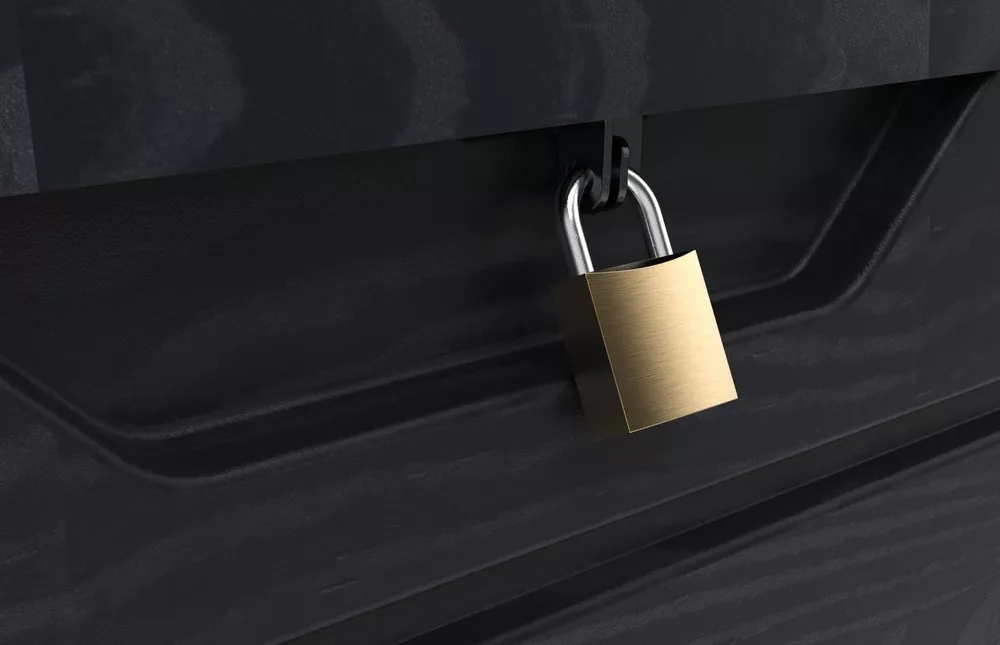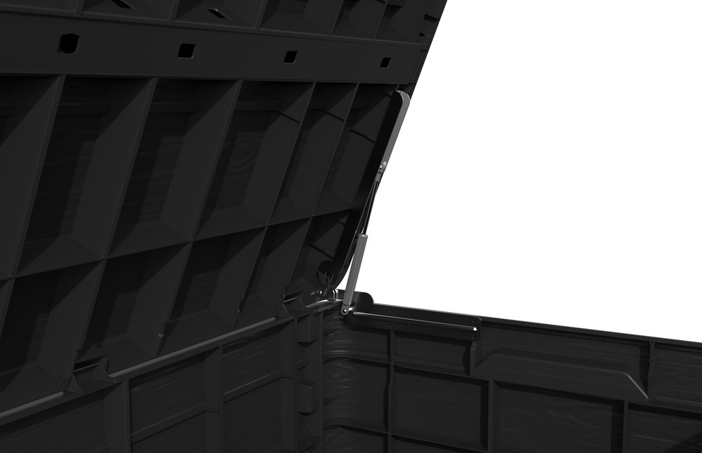 A doboz dugattyúkkal (gázrugókkal) van felszerelve a fedél könnyű kinyitásához. Biztos lehet benne, hogy holmija biztonságban és szárazon marad. Ráadásul a zárolási (lakat nem része a csomagnak) lehetőségnek köszönhetően nyugodt lehet, hogy eszközei biztonságban van.