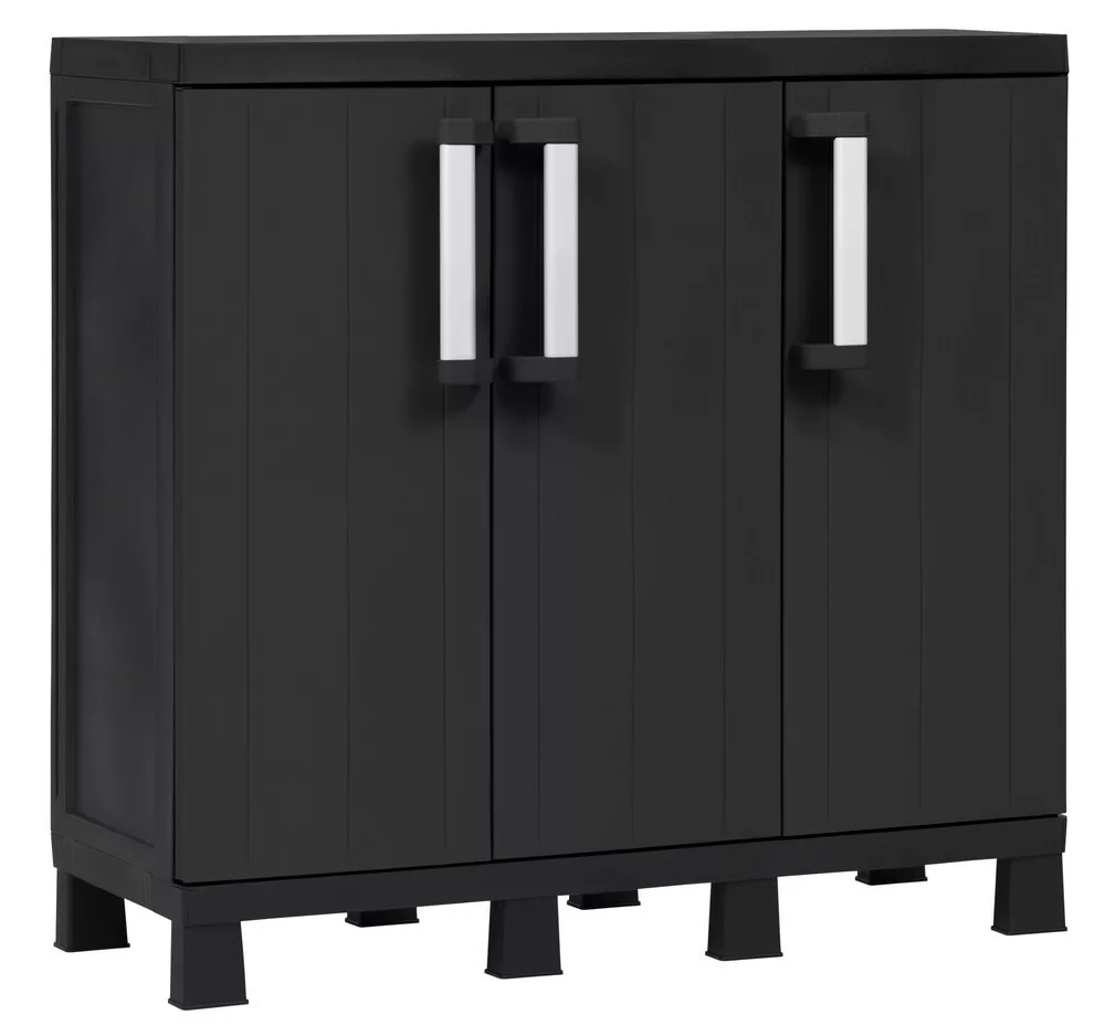 Praktikus műanyag duplaszárnyú szekrény GARAGE MIDI TRIO LOW fekete színben.