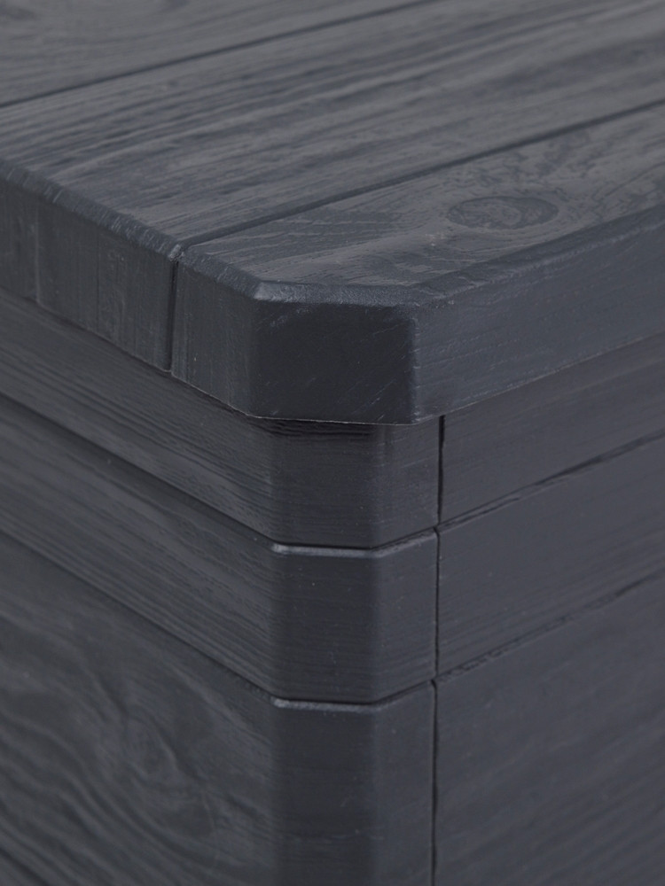 Tetszetős kialakításának köszönhetően ez a doboz tökéletesen illeszkedik bármely kertbe vagy teraszra. Fához hasonlító kellemes rusztikus varázst ad a térnek.