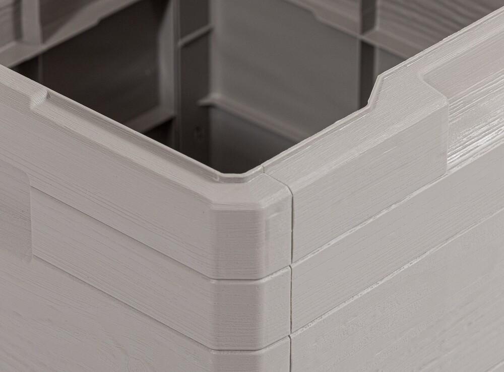 Vonzó dizájnjának köszönhetően ez a doboz remekül illeszkedik bármilyen kertbe vagy teraszra. Fa hatású felülete kellemes rusztikus bájt ad a térnek.