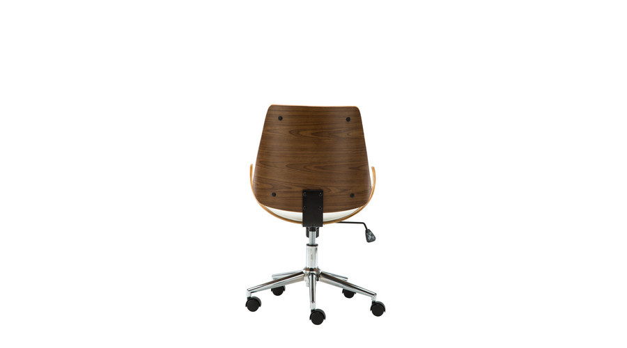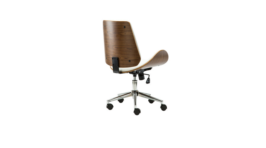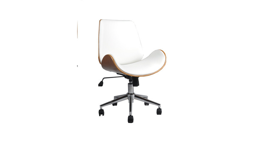 Közepes méretű, exkluzív megjelenésű, króm csillaglábas, hajlított fa vázon PU kárpitozású irodai forgószék. Kimagasló minőségi kidolgozás és anyaghasználat jellemzi. Az ülőlap kialakítása magas komfort érzetet ad használójának, akár több órán keresztül is.