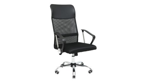 Magas háttámlás, króm csillaglábbal ellátott, karfás, kényelmes irodai forgószék. Az ülőfelület textil kárpitozású, a háttámla hálós mesh textil kialakítású. Az ergonomikus háttámla kialakítás miatt kényelmes használatot biztosít. Gázliftes magasság állítás és hintamechanika.