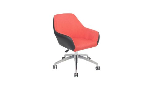 Különleges, egyedi retró megjelenésű, állítható magasságú, műbőr-textil kárpitozású forgó fotel. A króm csillagláb és gázlift jól harmonizál a 70-es éveket idéző ülőrésszel.