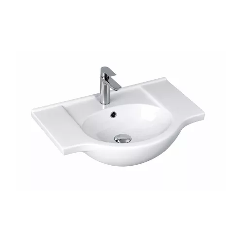 A V65 szárnyas kerámia mosdó számos pozitív tulajdonsággal rendelkezik. Ezek közé tartozik a tökéletesen letisztult körvonalak és az egyenes rakodófelületek. Csaplyukkal és túlfolyókkal rendelkezik. A mosdó 654x469 mm-es.