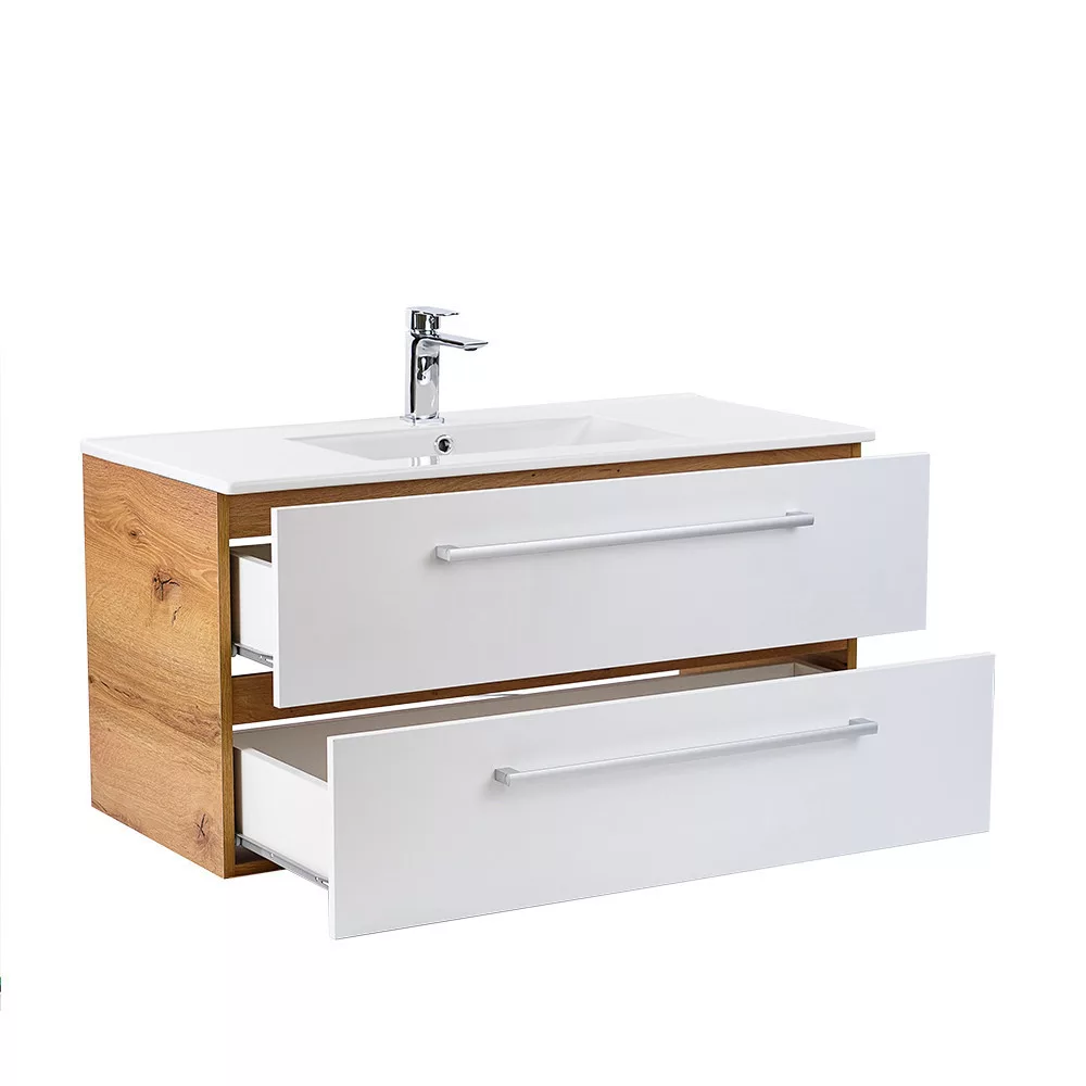 Vario Clam 100 alsó szekrény mosdóval tölgy-fehér - stílusos és modern fürdőszobabútor