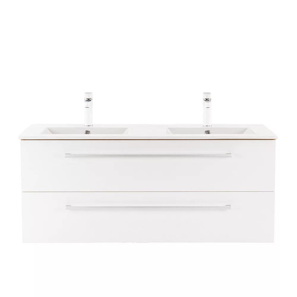 • Elegáns és praktikus mosdó: A bútor flat design kerámia mosdóval érkezik, amely kétmedencés kivitelű. Modern, esztétikus és könnyen tisztítható.