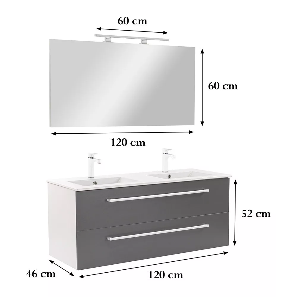 Vario Clam 120 komplett fürdőszoba bútor fehér-antracit - stílusos és modern fürdőszobabútor