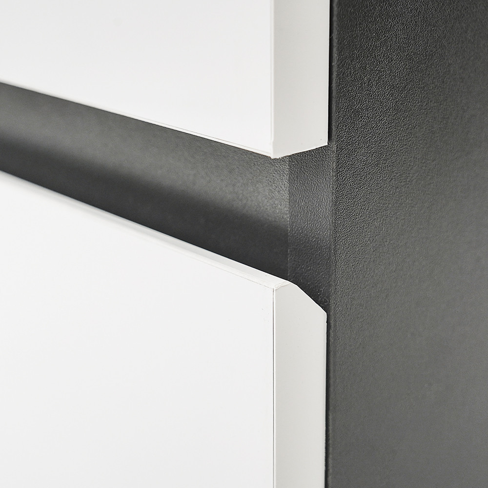 Az antracit korpusz és a fehér front kombinációja elegáns és időtálló megjelenést kölcsönöz a bútornak.
