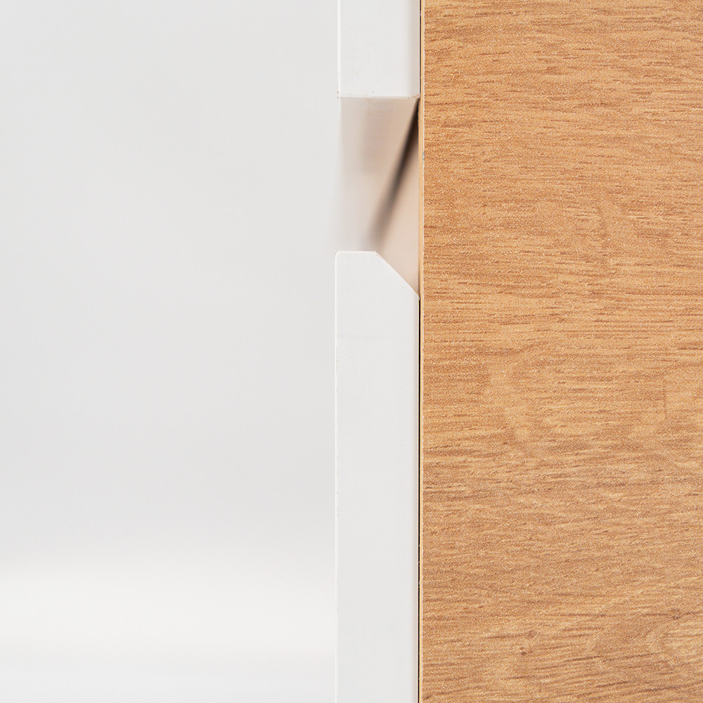 Az tölgy korpusz és a fehér front kombinációja elegáns és időtálló megjelenést kölcsönöz a bútornak.