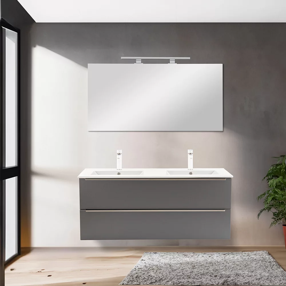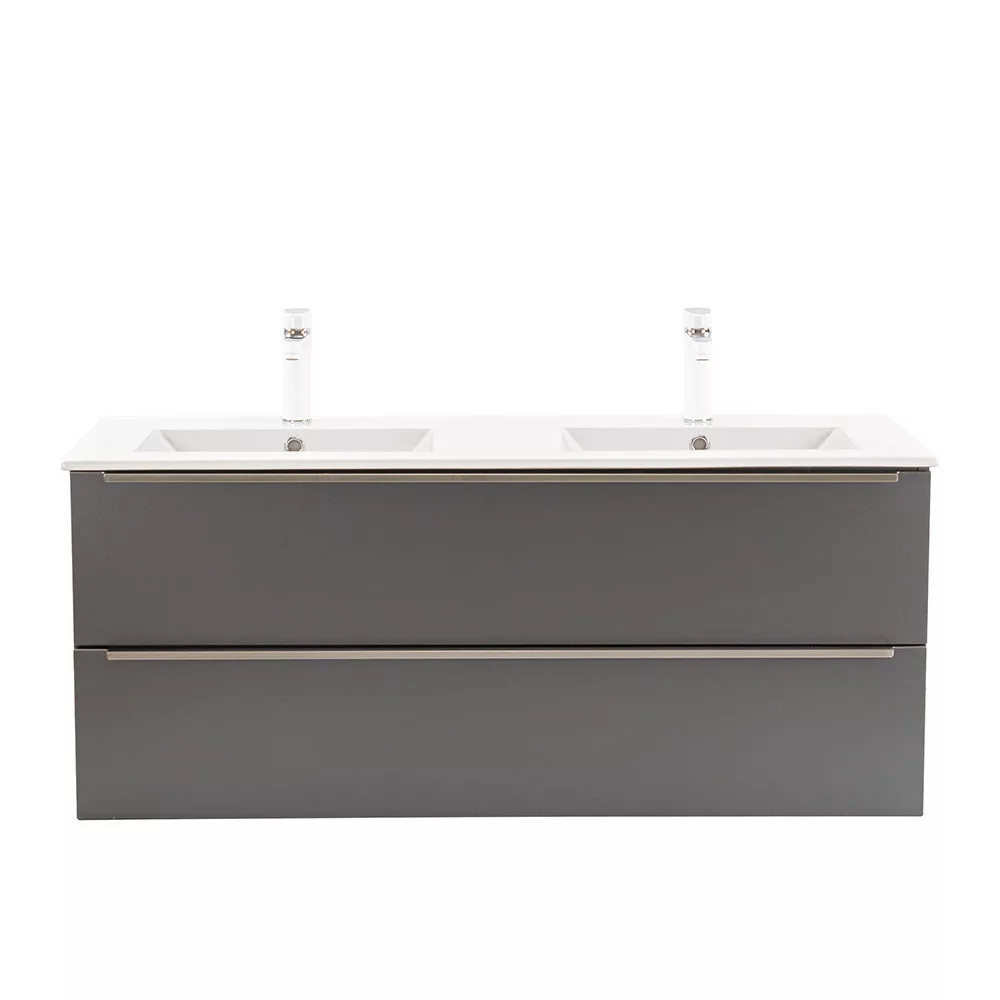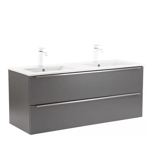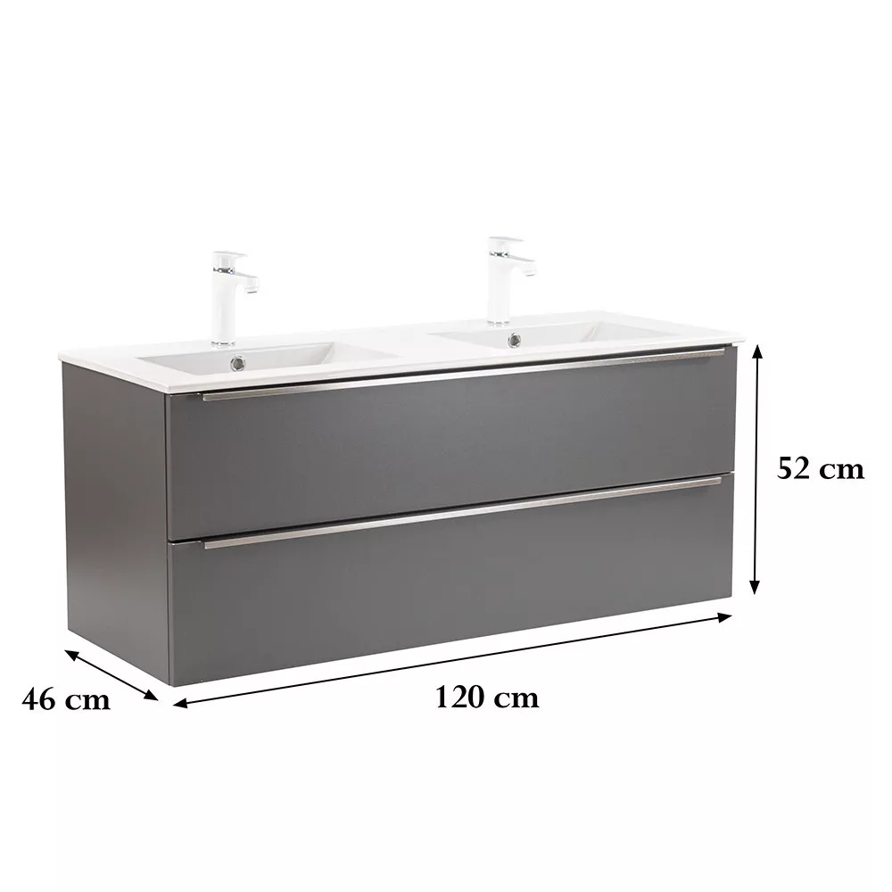 • Elegáns és praktikus mosdó: A bútor flat design kerámia mosdóval érkezik, amely kétmedencés kivitelű. Modern, esztétikus és könnyen tisztítható.