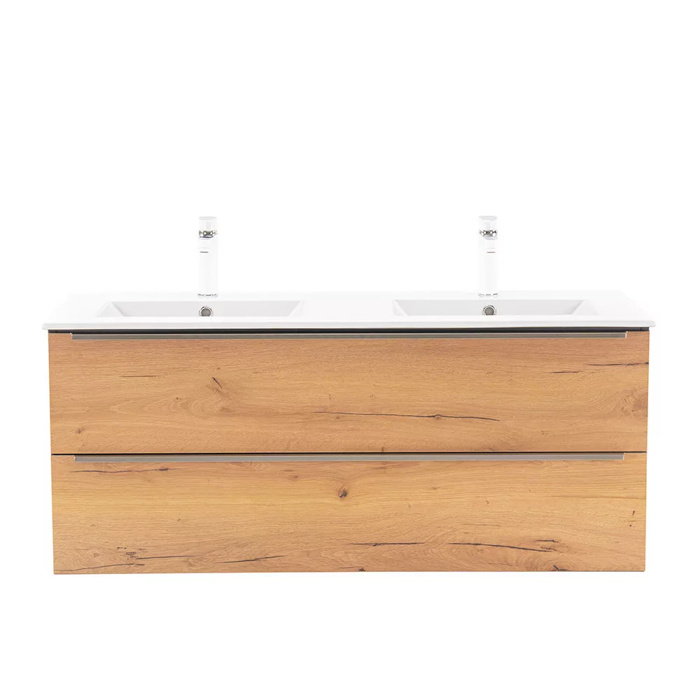 • Elegáns és praktikus mosdó: A bútor flat design kerámia mosdóval érkezik, amely kétmedencés kivitelű. Modern, esztétikus és könnyen tisztítható.