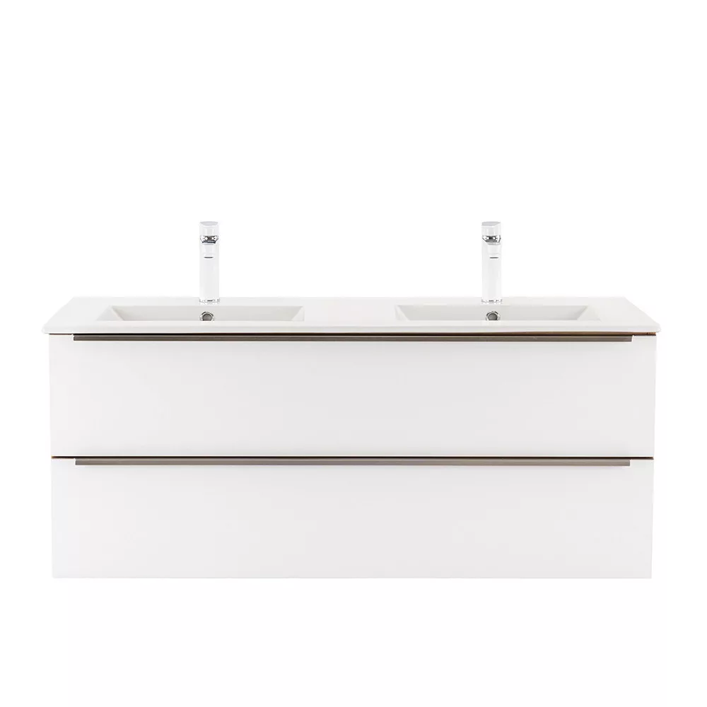 A bútor flat design kerámia mosdóval érkezik, amely kétmedencés kivitelű. Modern, esztétikus és könnyen tisztítható.