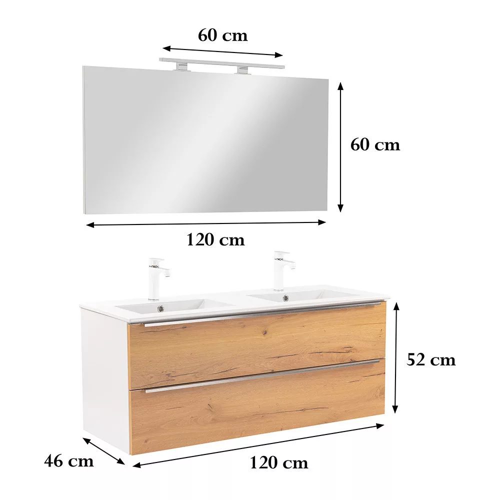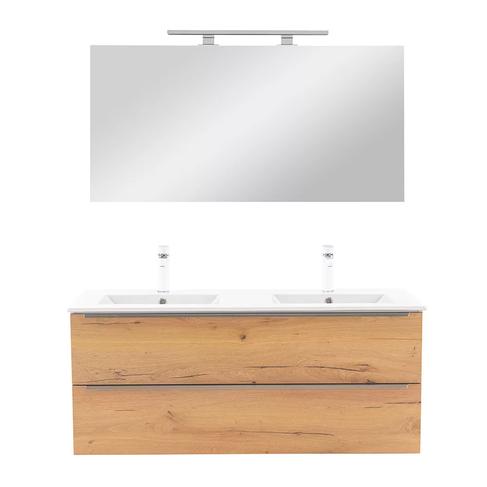 Vario Trim 120 komplett fürdőszoba bútor fehér-tölgy - stílusos és modern fürdőszobabútor