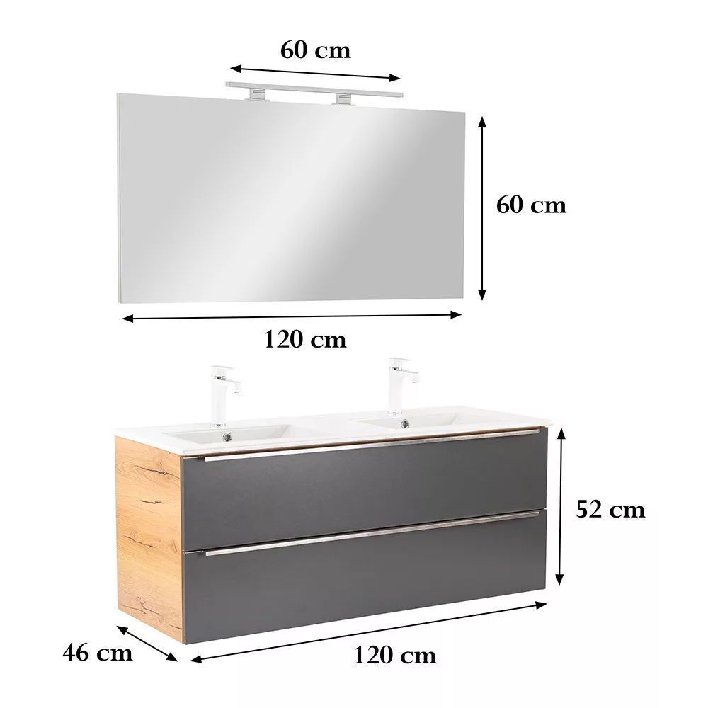 Vario Trim 120 komplett fürdőszoba bútor tölgy-antracit - stílusos és modern fürdőszobabútor