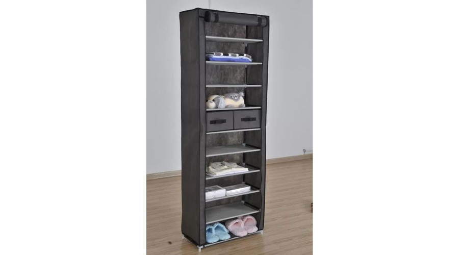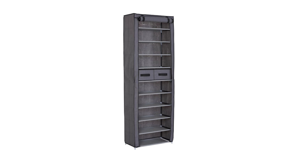 A vászon cipőtároló kiváló választás azok számára, akik előszobában, garázsban vagy nyaralóban szeretnék rendezetten tárolni cipőiket. A termék 10 rekesszel és 2 kihúzható fiókkal rendelkezik, így sokféle lábbeli könnyedén elhelyezhető benne. Gyorsan össze- és szétszerelhető kialakítása lehetővé teszi a könnyű szállítást és áthelyezést. Légáteresztő anyagának köszönhetően biztosítja a megfelelő szellőzést is, ami különösen fontos a hosszabb ideig tárolt cipők esetében.
