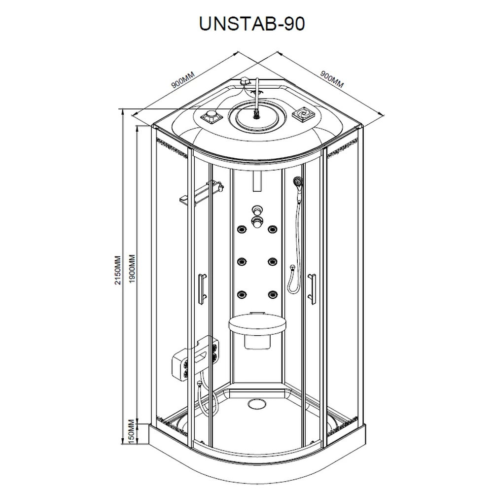 Leziter UNSTAB-90 Vital Black hidromasszázs zuhanykabin telepítés padlóra