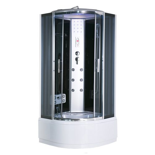 A Vital Black hidromasszázs zuhanykabin modern kinézete végett bármely fürdőszobába remekül mutat. Erősített profilokkal van ellátva a hosszabb élettartalom miatt. Matt krom profil található alul és fölül is. 6 hátmasszírozó fúvóka, alu hátsó panel,elektronika, kezelőpanel, rádió, hangszóró, hátsó és felső hangulatvilágítás, felső világítás, pipere polc és a lábmasszírozó biztosítja a kényelmet. 2 zuhanyfej: esőztető fejzuhany, kézi zuhany. Keverő csaptelep, funkcióválasztó kar.