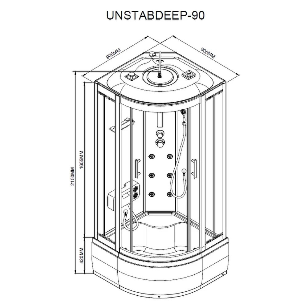 Leziter UNSTABDEEP-90 Vital 90 Black mélytálcás hidromasszázs zuhanykabin telepítés padlóra