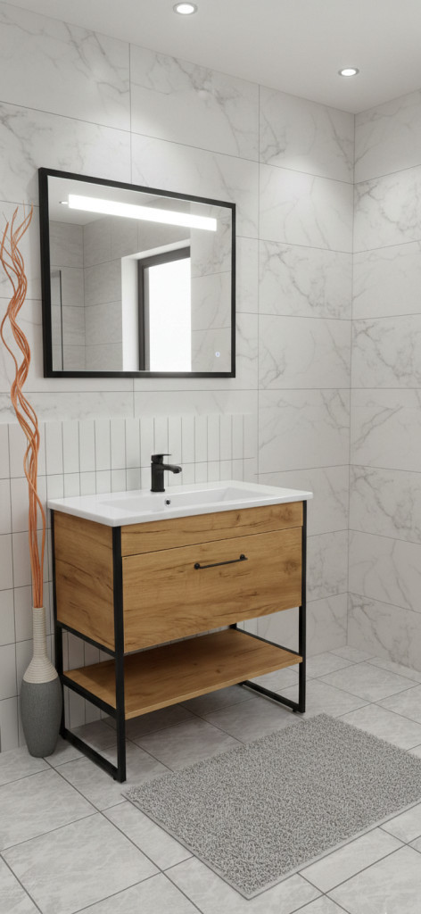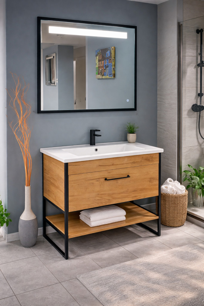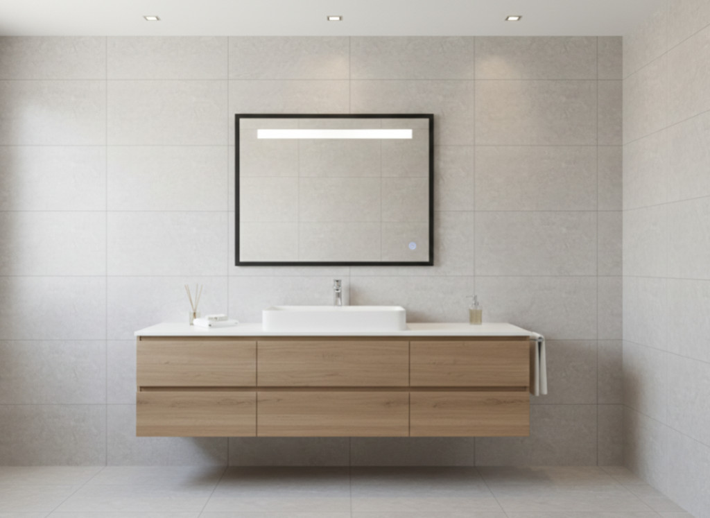 TMP IRON fürdőszobai tükör - FEKETE keret - szögletes - LED világítással - 85 x 68 cm