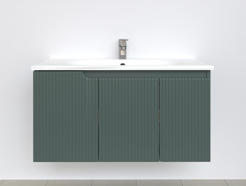 Piramida EURIDIKA fali fürdőszobabútor - műmárvány mosdóval -3 ajtós - PINO FEKZÖLDETE - 100 x 48 x 53 cm