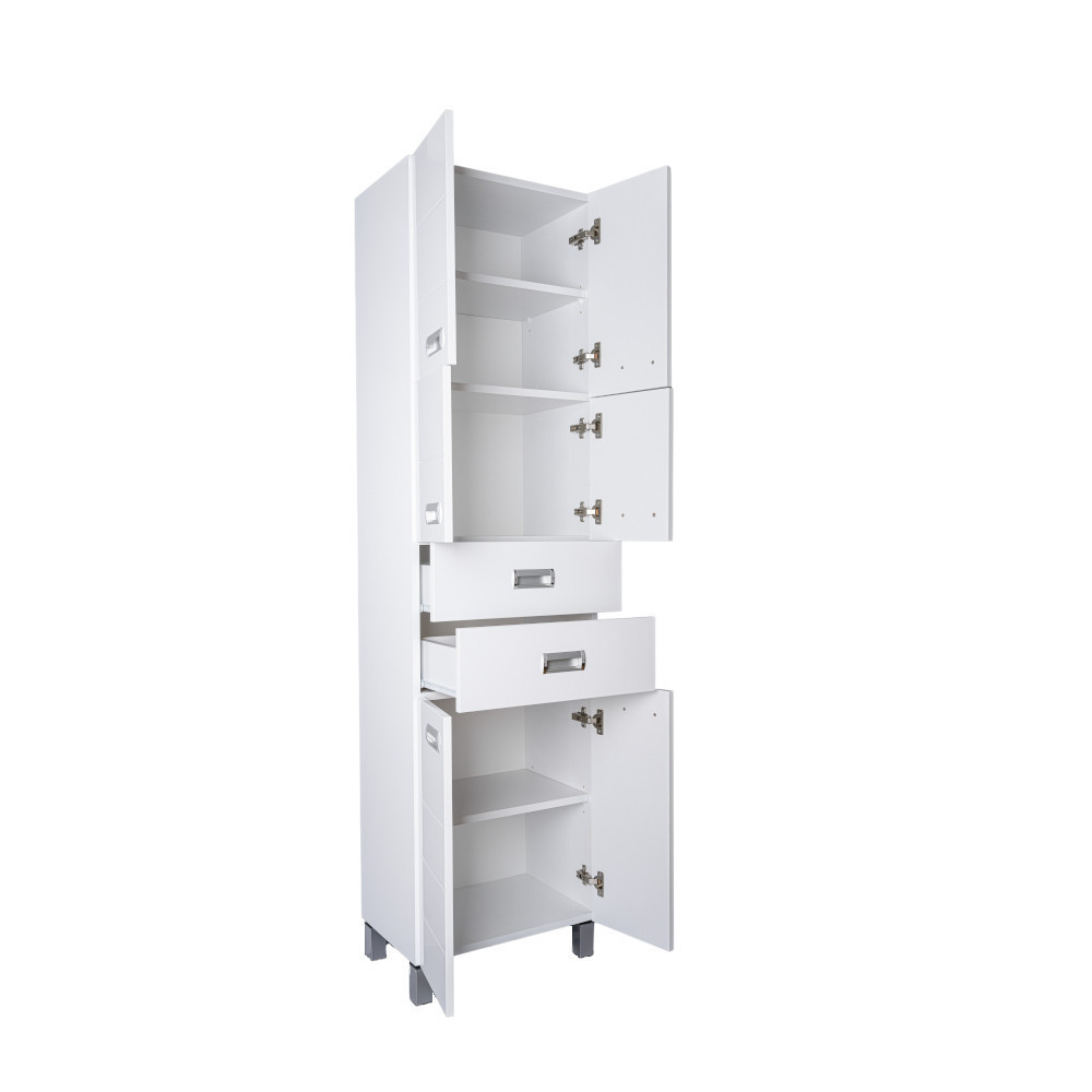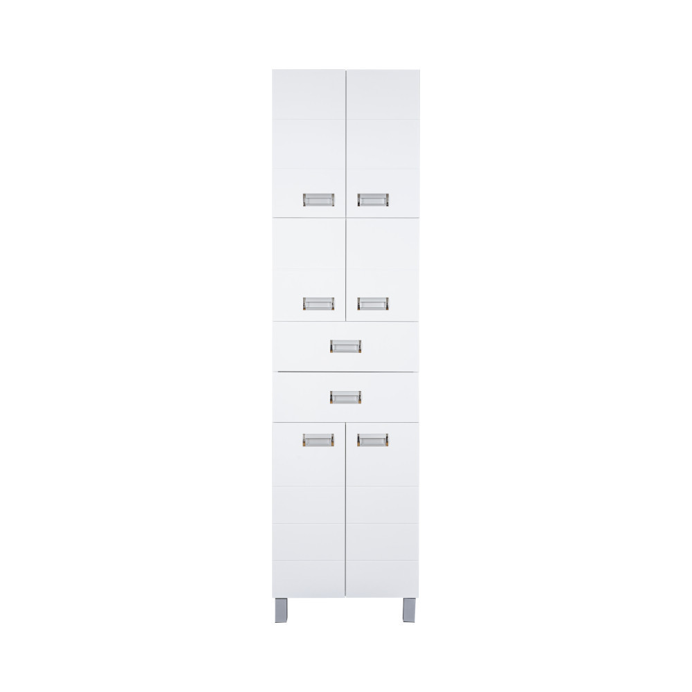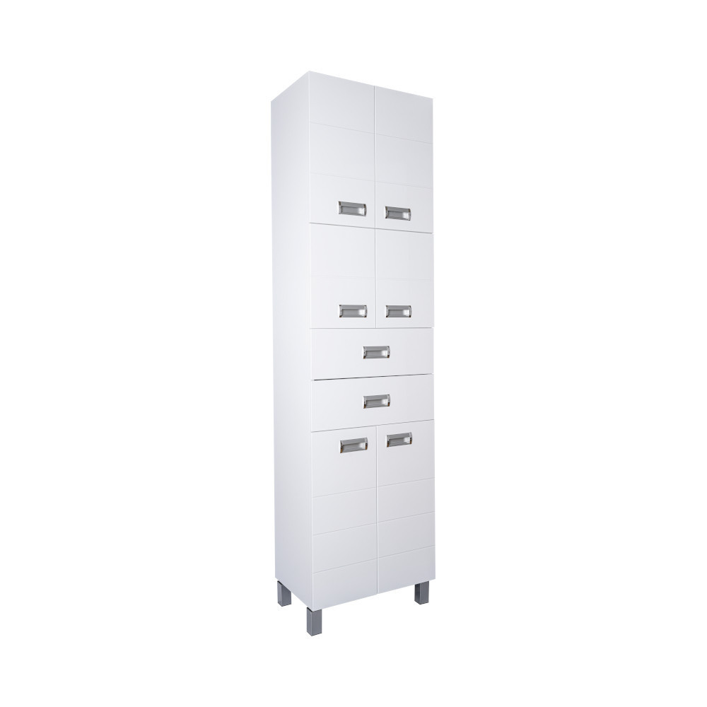 A Szquare állószekrény magas polcos praktikus és hasznos megoldást kínál.. Polcaiban tárolhatók a kisebb ruhaneműk, törölközők vagy tisztító és tisztálkodó eszközök és szerek. Ezen felül még 2 fiókkal rendelkezik. Fehér színével szinte mindenhová beilleszkedik és esztétikus környezetet teremt.