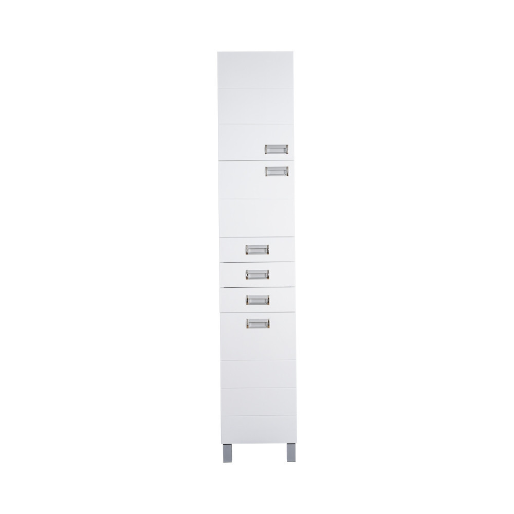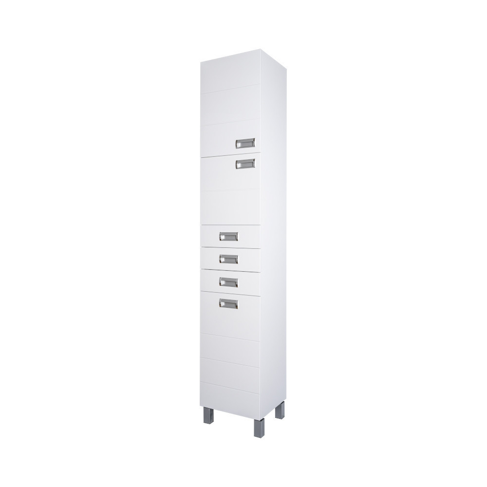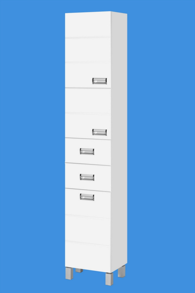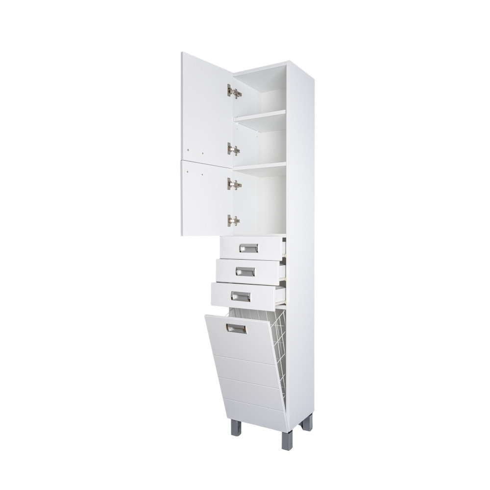A Szquare állószekrény magas szennyestartós praktikus és hasznos megoldást kínál. Polcaiban tárolhatók a kisebb ruhaneműk, törölközők vagy tisztító és tisztálkodó eszközök és szerek. Ezen felül még 3 fiókkal rendelkezik. A szekrény alsó részében található a szennyestartó kosár. Fehér színével szinte mindenhová beilleszkedik és esztétikus környezetet teremt. Rendezze be úgy fürdőszobáját, hogy a végeredmény örömet szerezzen a szemnek és szolgáljon sokáig!