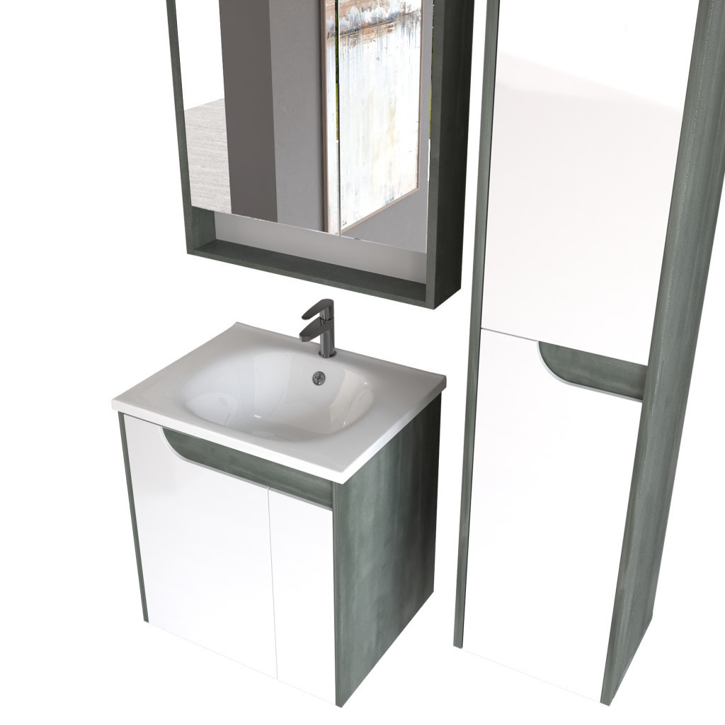 Piramida EURIDIKA fali fürdőszobabútor - műmárvány mosdóval -2 ajtós - FEHÉR-SÖTÉT - 65 x 48 x 62 cm