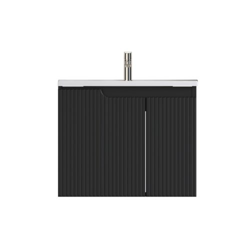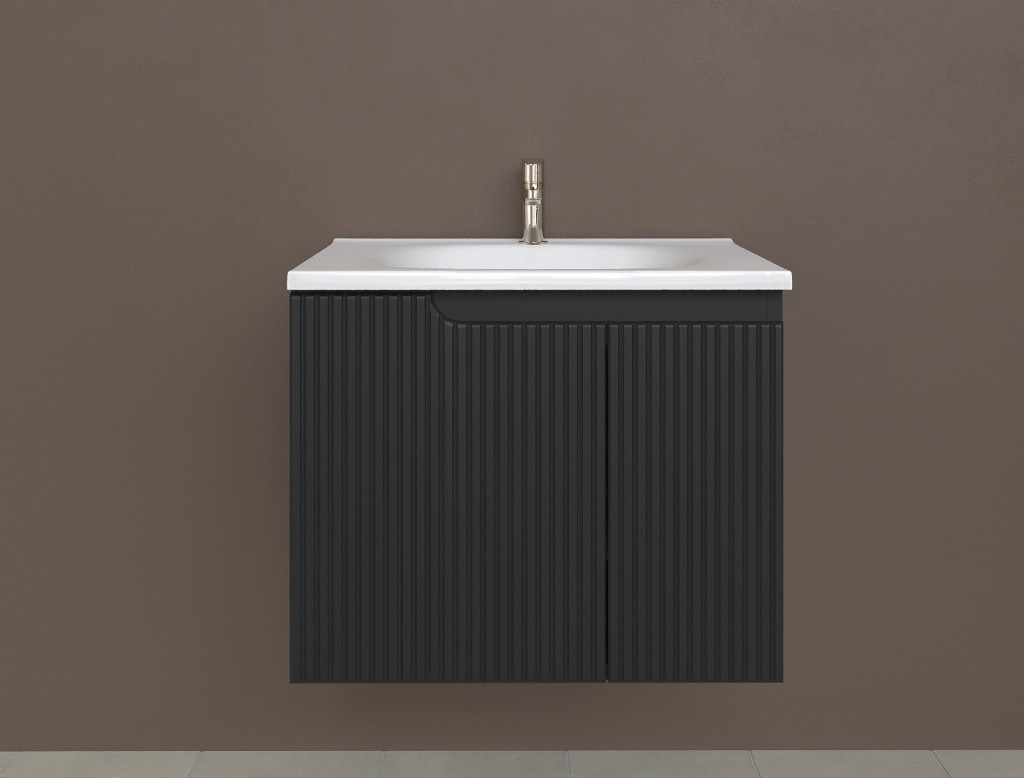 Piramida EURIDIKA fali fürdőszobabútor - műmárvány mosdóval -2 ajtós - PINO FEKETE - 65 x 48 x 53 cm