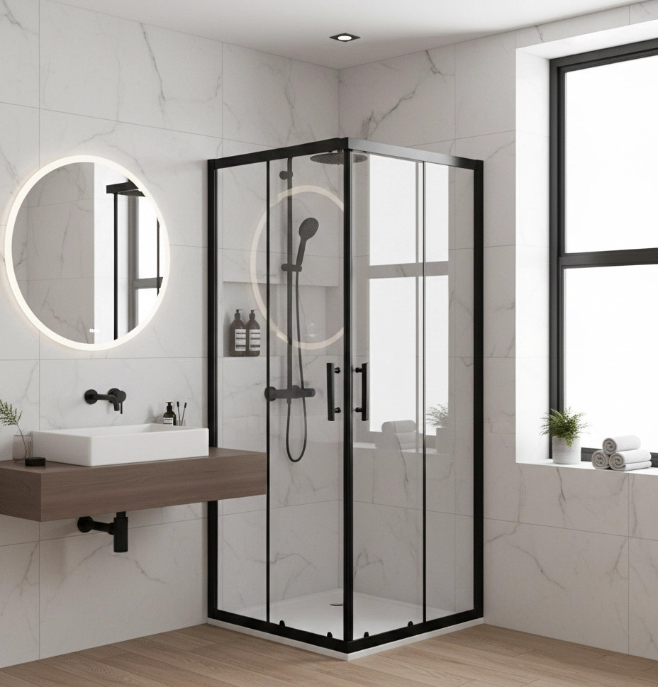 Viva AQUA Max Zuhanykabin SZÖGLETES FEKETE Profil - 6 mm víztiszta üveg - 80 x 80 x 190 cm