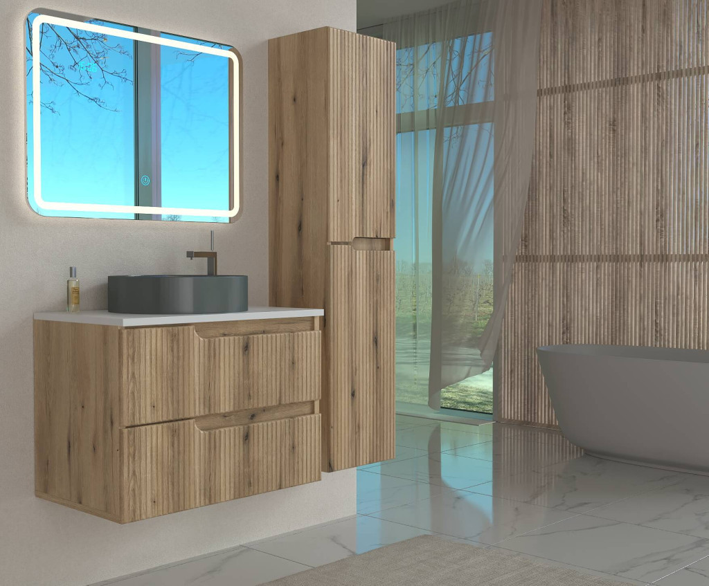 Piramida EURIDIKA fali fürdőszobabútor - mosdópult mosdó nélkül -2 fiókos - PINO TÖLGY - 75 x 48 x 53 cm