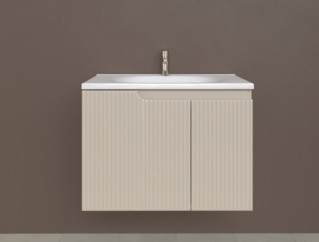 Piramida EURIDIKA fali fürdőszobabútor - műmárvány mosdóval -2 ajtós - PINO BÉZS - 75 x 48 x 53 cm