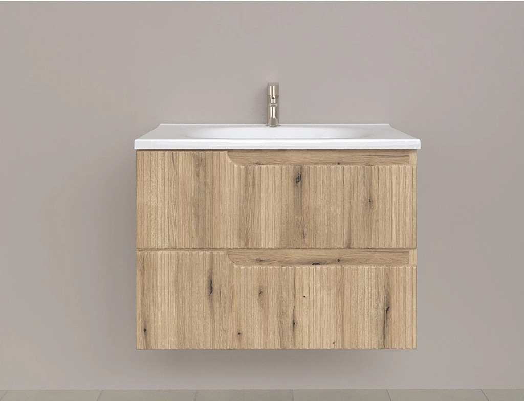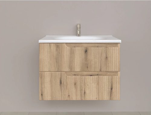 Piramida EURIDIKA fali fürdőszobabútor - műmárvány mosdóval -2 ajtós - PINO TÖLGY - 75 x 48 x 53 cm